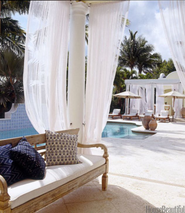 Kỳ nghỉ của gia đình lúc này gần như nằm toàn bộ ở sân sau của gia đình bạn. Rèm Gauzy mang lại cho khu vực hồ bơi một cảm giác mát mẻ, đầy tính nhiệt đới.