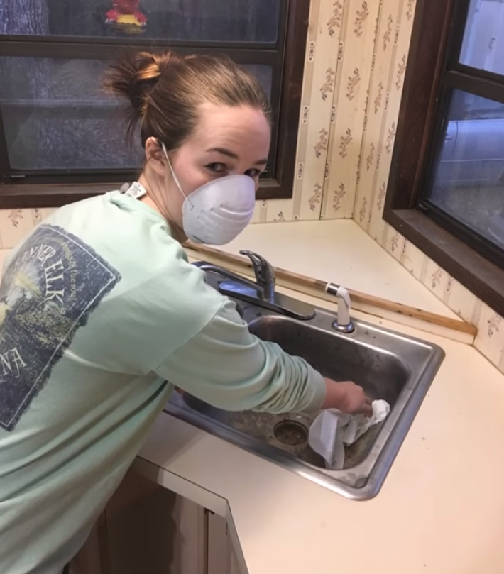 Bước đầu tiên là dọn dẹp những thứ không sử dụng nữa. Ngôi nhà này đã có hơn 30 năm và họ đã mất phần lớn trong ngày để hoàn thành công đoạn này. Sau đó, họ đã cùng nhau gỡ và vứt bỏ tấm thảm hiện tại của nhà, ngay cả chiếc ghế sofa cũng không được tận dụng mà phải bỏ đi. Trong quá trình làm, 4 chị em dần nhận ra họ đã đánh giá hơi thấp việc cải tạo nhà ở thế nên đã phải “sử dụng quyền trợ giúp”, nhờ sự giúp đỡ của vài chàng thanh niên là bạn bè của họ.