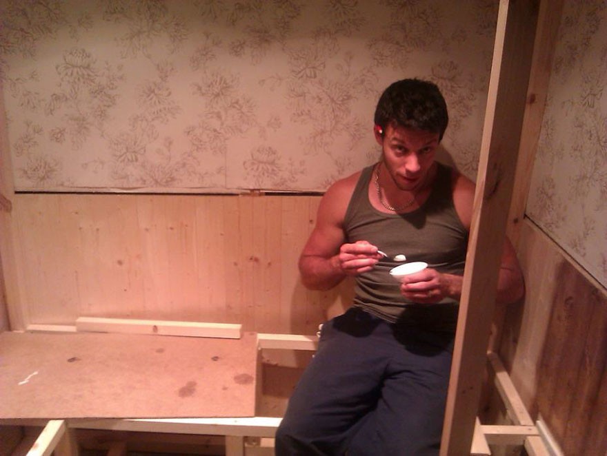 Sau khi đã hoàn thành phần khung của ngôi nhà, Ashley sử dụng vật liệu chống thấm để làm tường bao quanh.