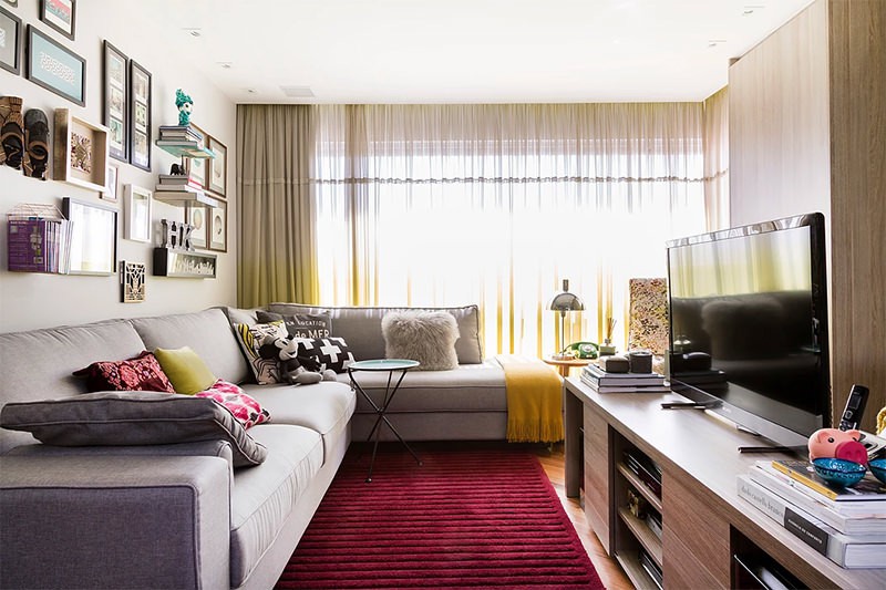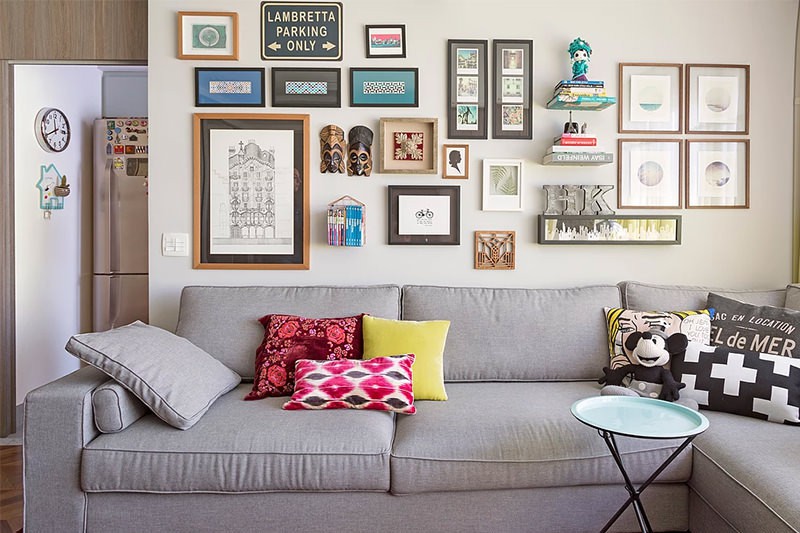 Trên ghế sofa trong phòng khách, bạn sử dụng nhiều những chiếc ghế ôm đầy màu sắc cùng những bức tranh treo đầy tường màu đơn sắc sẽ khiến không gian trở nên vô cùng sống động như trong studio.