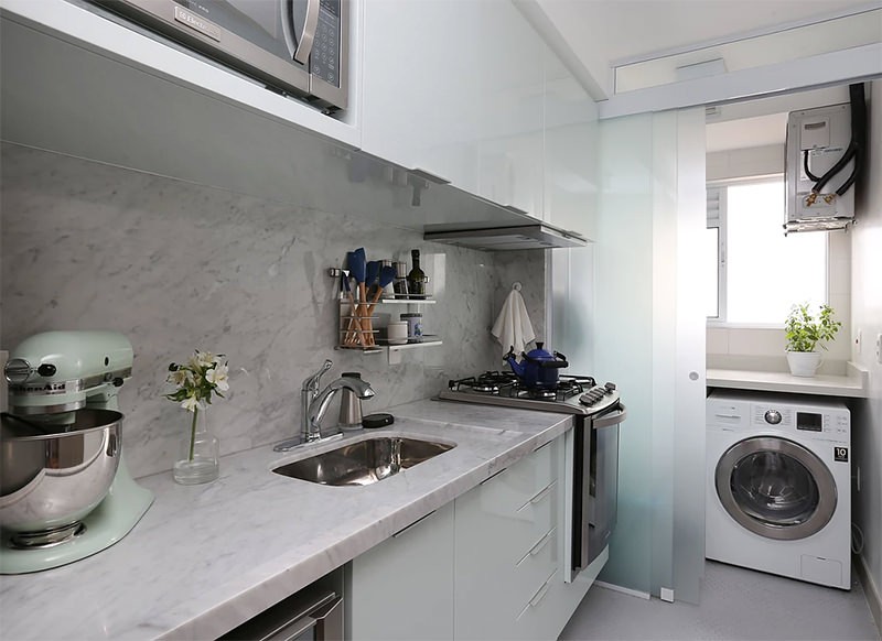 Ở thiết kế nhà kiểu studio này, nhà bếp hoàn toàn riêng biệt. Đây cũng là một sự khác biệt lớn đối với một số người. Tất cả các phòng đều được trang trí theo phong cách studio có sự kết hợp giữa cổ điển và hiện đại cùng lúc, ví dụ như các yếu tố cổ điển trên giường ngủ trái ngược với kết cấu xi măng cháy trên tường và màu sắc của khăn trải giường và đầu giường.